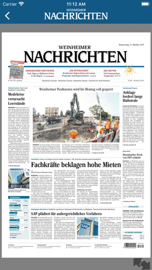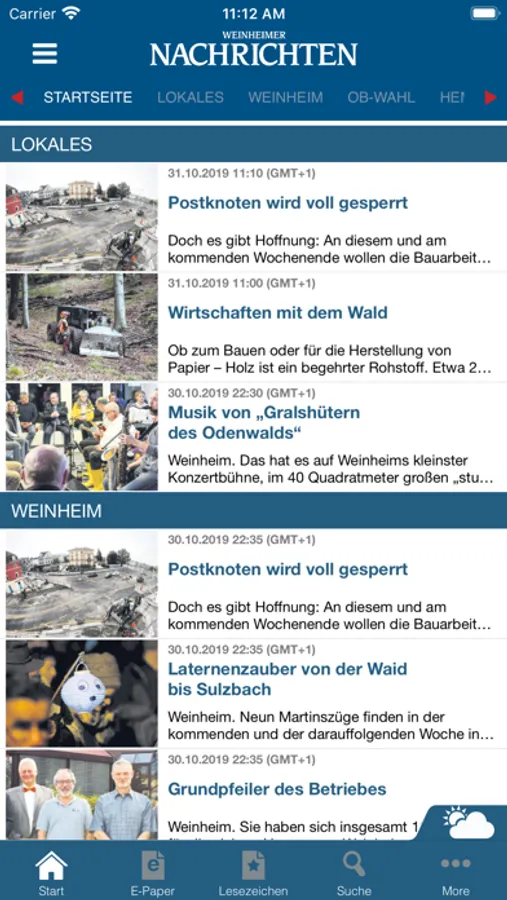 Mit den Weinheimer Nachrichten und der Odenwälder Zeitung publizieren die DiesbachMedien die beiden lokalen Tageszeitungen für Weinheim und Umgebung sowie den angrenzenden hessischen Odenwald. Jetzt stehen beide Lokalausgaben auch als App zur Verfügung. Lesen Sie täglich bereits ab 4 Uhr aktuelle Berichte aus Ihrer Region sowie Nachrichten aus Politik, Wirtschaft, Kultur, Sport und vielen weiteren Themen.