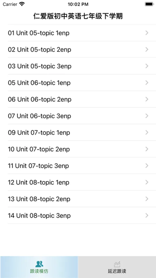 本应用对应科普版仁爱版初中英语7年级下学期, 具有跟读模仿,自动听写的复读机功能。