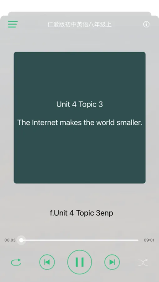本应用对应科普版仁爱版初中英语8年级上学期, 具有跟读模仿,自动听写的复读机功能。