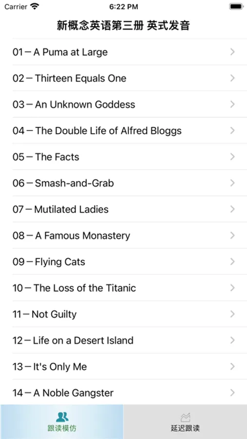 本应用对应新概念英语第三册课本,具有跟读模仿,自动听写的复读机功能。