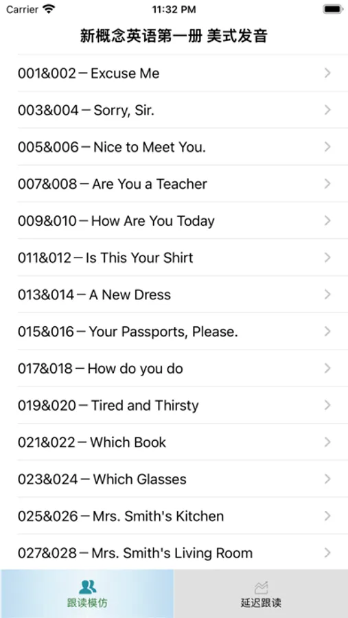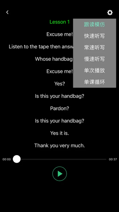 本应用对应新概念英语第一册课本,具有跟读模仿,自动听写的复读机功能。