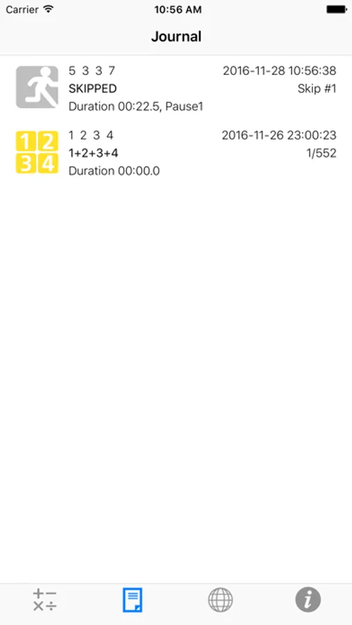 Header shows points for number, skip count, pause count and current score. Score will be submitted to Game Center if you have logged in to Game Center.