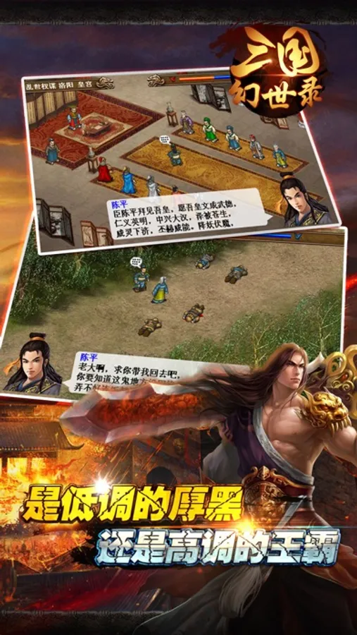“三国幻世录”是一款策略单机游戏,游戏主线一共有五十多个关卡,讲述了一位少年穿越到三国中,通三国名将共同作战,最后改变历史的故事。在游戏中,玩家将扮演陈平,打败吕布,孙坚,袁绍,最后大战马超、刘备,最终战胜曹操统一天下。从游戏承接经典的战旗单机玩法,侧重于在游戏中合理的站位和布阵。