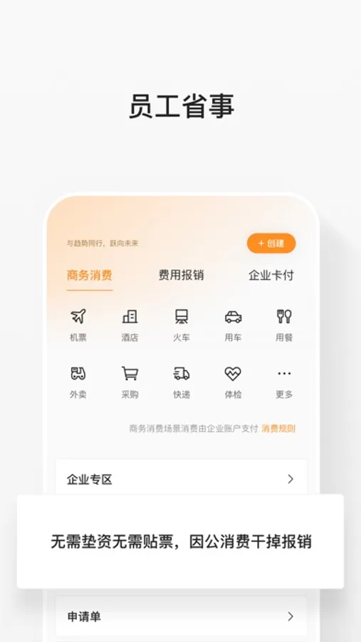 员工省事:免垫资/免贴票/免报销,提升员工满意度