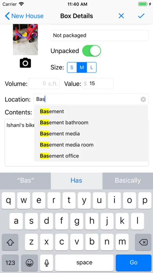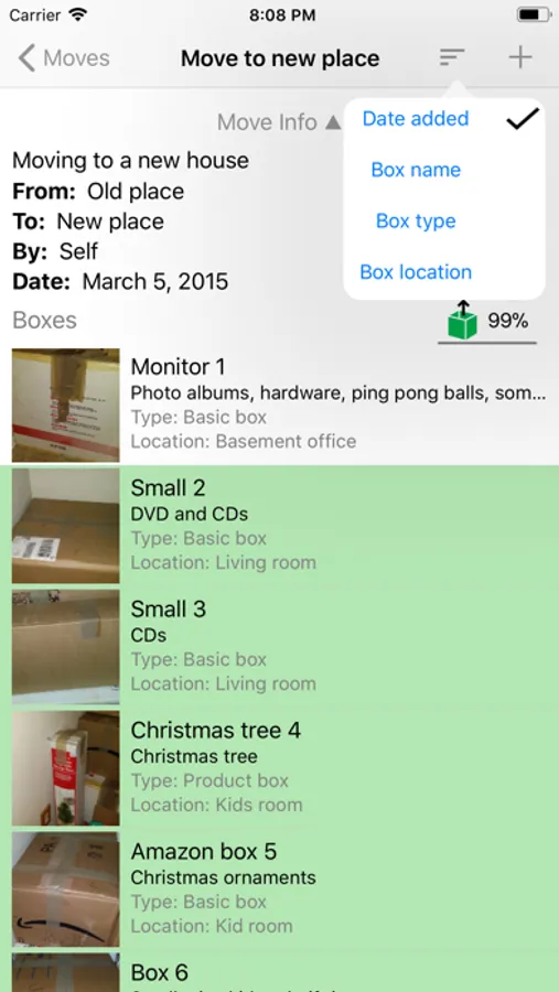 * Track pictures, locations, values and sizes of your boxes
