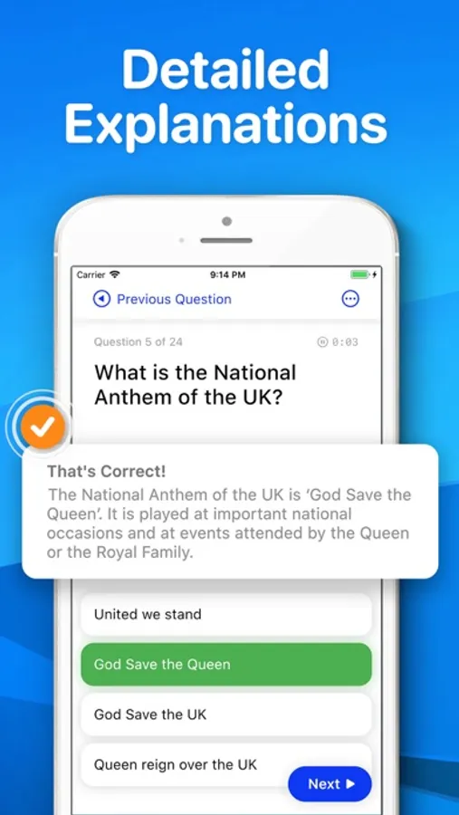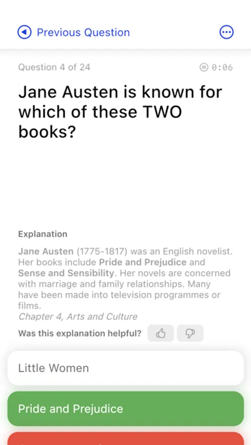 You’ll be tested on information in the official handbook for the Life in the UK Test included in this app - this is the only book recommended to prepare for the test. You’ll have 45 minutes to answer 24 questions.