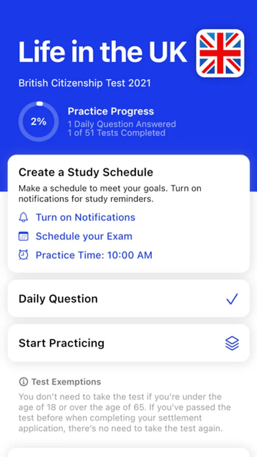 Note: Remember that you must book your Life in the UK Test online at least 3 days in advance. There is a fee to register. There are around 60 test centres in the UK - choose one of the 5 closest to where you live. If the centre isn’t close to where you live, you won’t be allowed to sit the test and you won’t get a refund. Remember to bring proof of your address to the test. If you have covered all the material in this app - It should be a breeze!