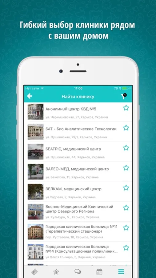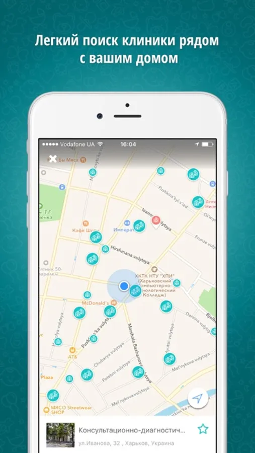 • Клиники — благодаря гибким настройкам поиска в этом разделе, вы найдете специалиста нужного профиля в вашем населенном пункте. На данный момент сервис доступен для жителей Украины и Беларуси, другие страны СНГ ожидаются в следующей версии.