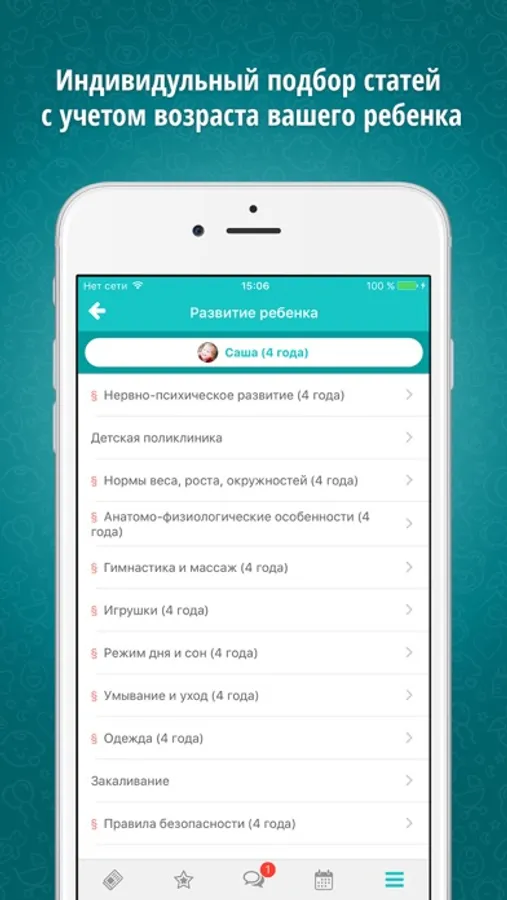 Персонализация: Укажите в профиле возраст ваших детей и все статьи и рекомендации в приложении будут подобраны в соответствии с этим параметром.