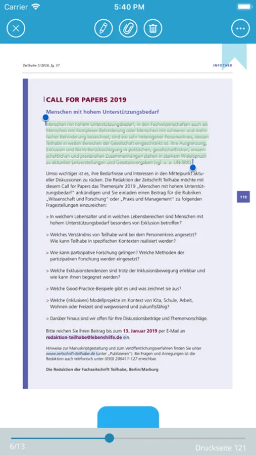 The Journal „Teilhabe“ is published by Lebenshilfe, four issues per year with approx. 48 pages.