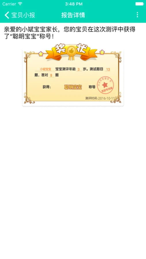 5、同步接收孩子在儿童平板上的能力测评结果;