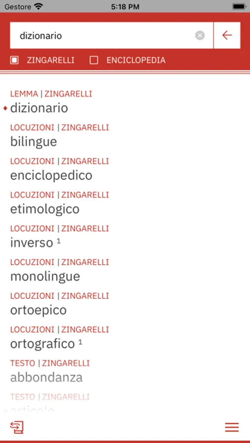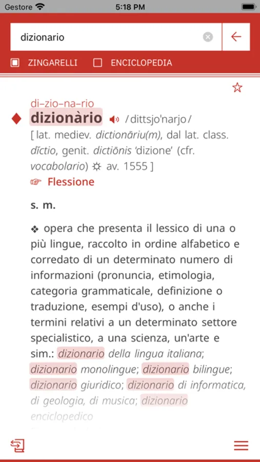 • attraverso la ricerca contestuale: basta tenere il dito su una parola all’interno di una voce per andare alla sua definizione