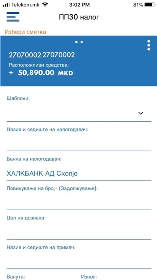 - извршување на плаќање преку користење на ПП30 и ПП50 налози од своја трансакциска сметка