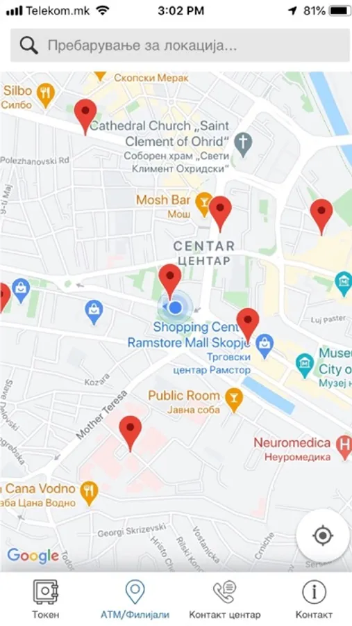 - лоцирање на најблиски банкомати и филијали