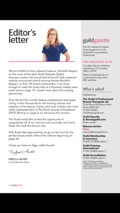 Guild Gazette magazine is the journal of the Guild of Beauty Therapists, the UK’s trade body for beauty therapists, holistic therapists, nail technicians, hairdressers, lecturers and beauty business owners. Each issue is packed with articles written by industry experts, to give you new ideas and advice on how to grow your business and stay ahead of the competition.