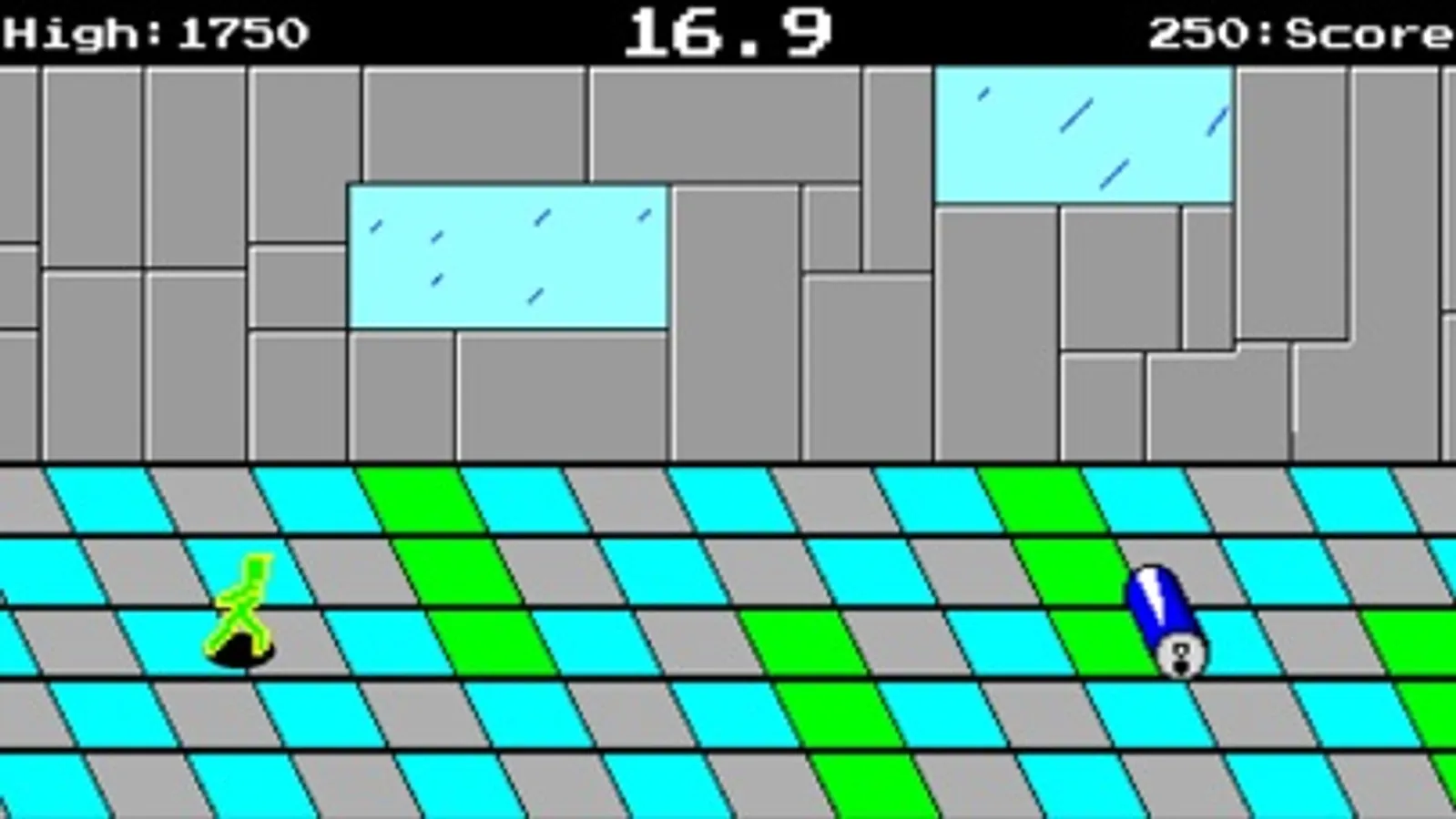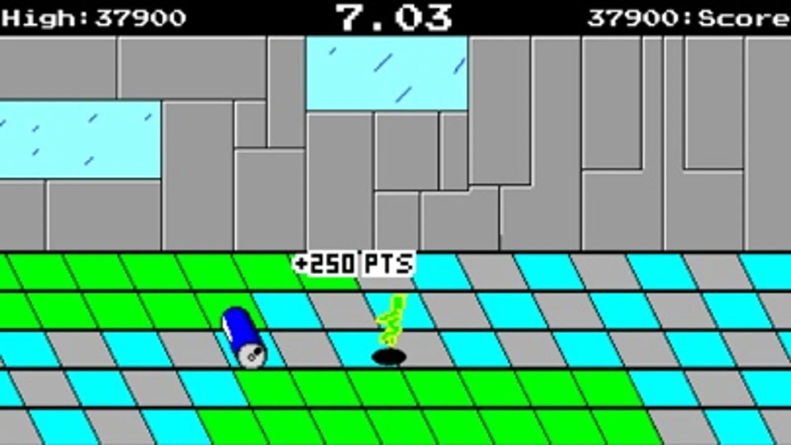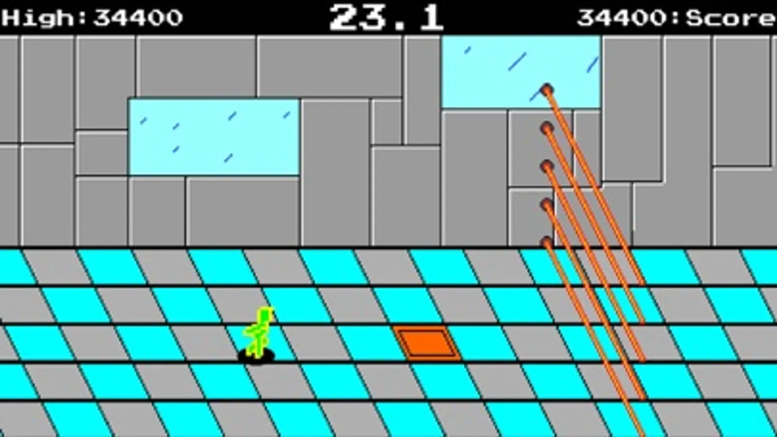Electro Cross is a runner style game loosely based off newer runners like Temple Run and older runners like Metro Cross (メトロクロス). The goal is to make it to the end without the timer ending. Move your finger around the screen to move Electro and tap to make him jump. Run into the cans to get certain bonuses (like time or points). Jump over the slowdown squares and holes. Step on the switches to make the laser walls disappear.