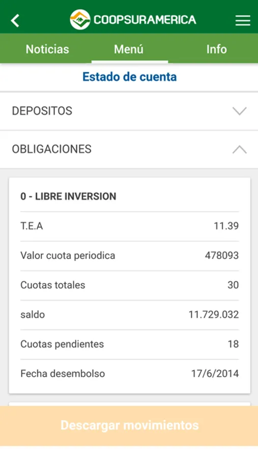 Aplicación para la cooperativa de ahorro y crédito de Suramérica.