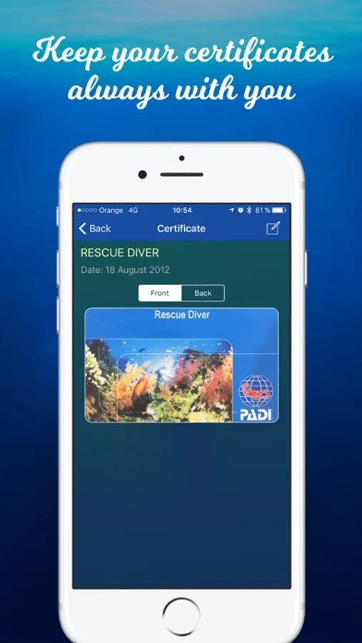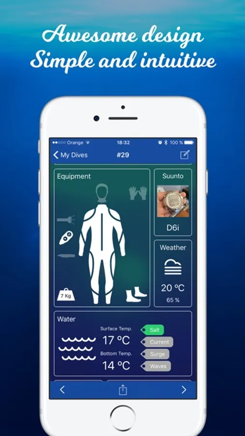Sync your diary between all your devices using iCloud. No matter where you are or what device your are using, your dive diary will be always with you.