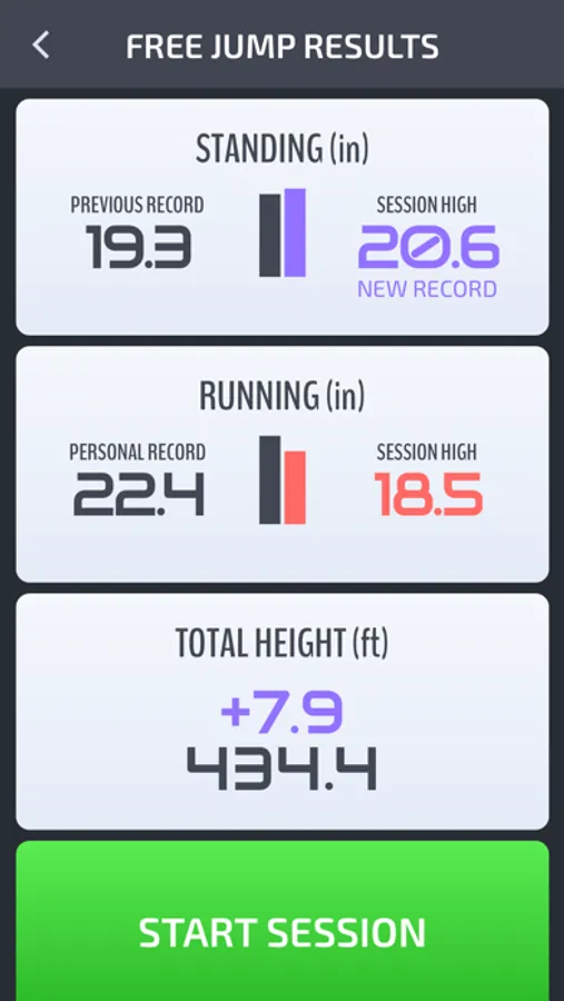 Keep track of your best jumps with personal records.