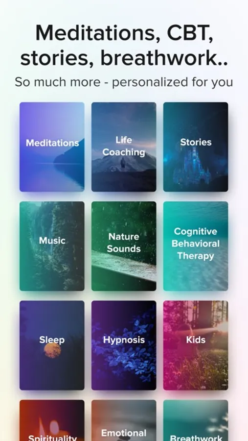 Discover thousands of personalized mindfulness meditations, stories & sleep tales, life coaching, CBT (cognitive behavioral therapy), hypnosis, music & sounds, and much more.