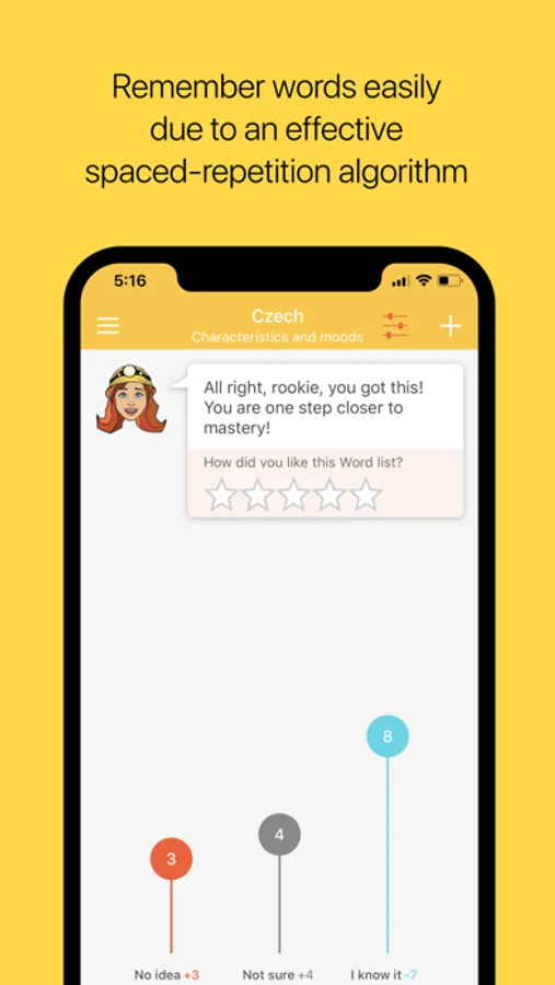 - Statistics show you that you remember more and more words with every learning session. Each package has its own statistics to track your progress.