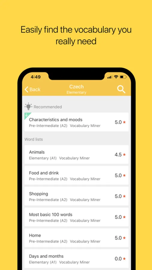 Vocabulary Miner is suitable for both, rookies and advanced learners. You can create your own word list at any Level or download vocabulary from A1 to C2.