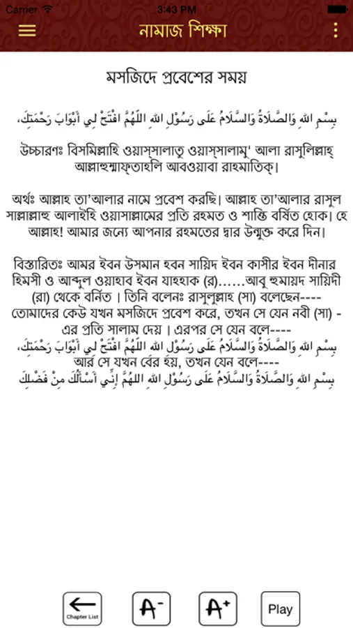 This is the prayer that app chapter (taken from the Holy Qur'an), prayer services (Al-Qur'an and the Hadith) and masaala, there have been Ruling (Arabic, Bengali and Bengali pronunciation, including money); Craving them are: