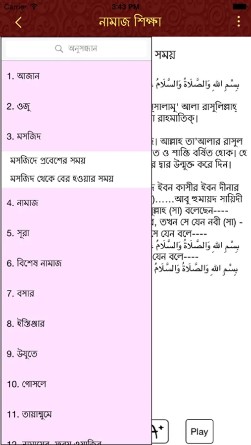 Namaj / salat related text and audio in a single app in Bangla / Bengali both for men & women, wine, Rokon, audio, Bengali pronunciation, meaning.