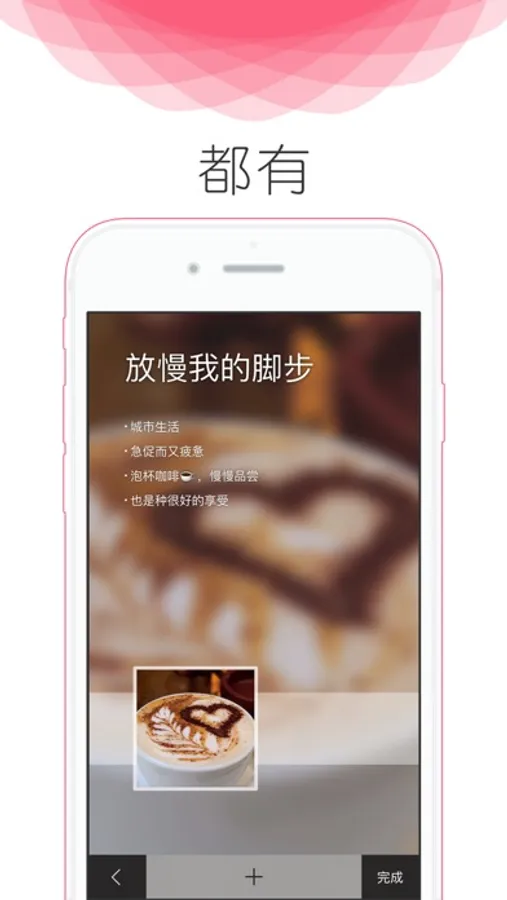 各种小清新的主题模板和样式,不同形状,模板元素可以自动拖拉排版,随意点击更换图片以及滤镜,让你的照片充满了个性。