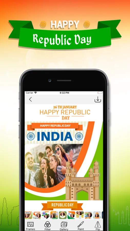 26 January, Republic day photo frame is free to use to make your impressive photo that show your feelings for nation. Create Attractive looking republic day photo frames by adjusting your images. There are many varieties of different photo frames related to republic and indian flags.