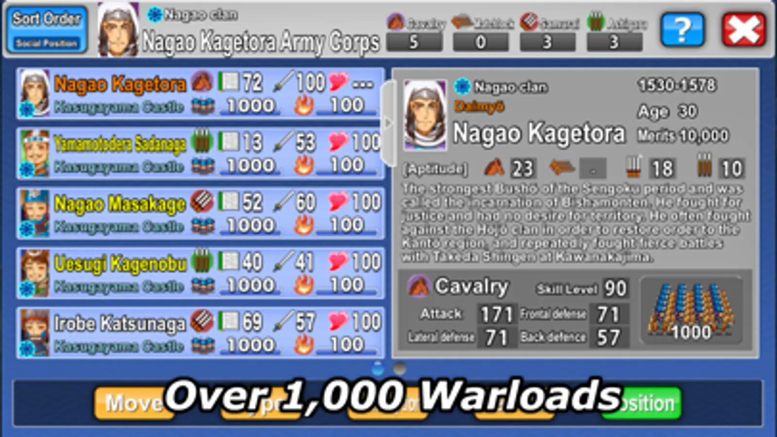 Once your economic power is in order, the next thing you need is an army. In Pocket Sengoku, each Busyos has 1,000 men to lead him. In order to form a large army, you need to hire that many Busyos.