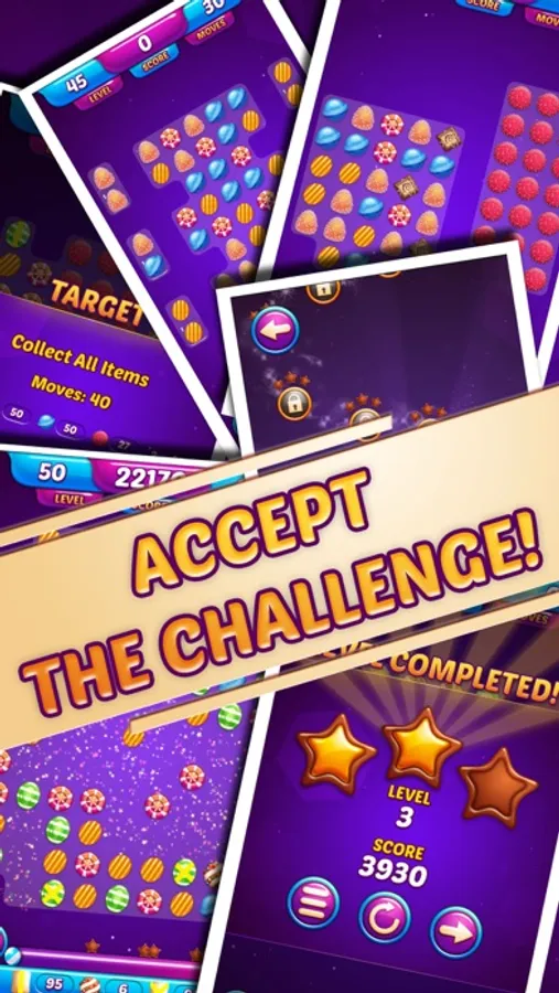 The Candy Shop is a new era of match 3 puzzle games, where you need to match 3 or more candies in order to make them disappear and to collect points.