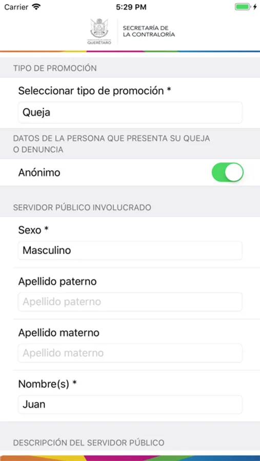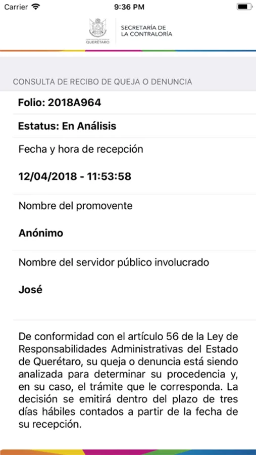 La aplicación Denuncia Corrupción Querétaro ha sido desarrollada por la Secretaría de la Contraloría del Poder Ejecutivo del Estado de Querétaro como una herramienta de apoyo mediante la cual los ciudadanos pueden presentar sus denuncias o quejas de manera formal, desde sus dispositivos móviles, en contra de servidores públicos que presenten conductas indebidas o actividades relacionadas con la corrupción.