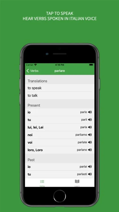 Search all Italian Verbs and find and listen to the different conjugations. All present tense verb conjugations are free!