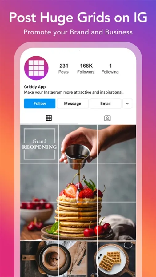 Follow our Instagram account @GriddyApp to get inspired and see grid posts made with Griddy!