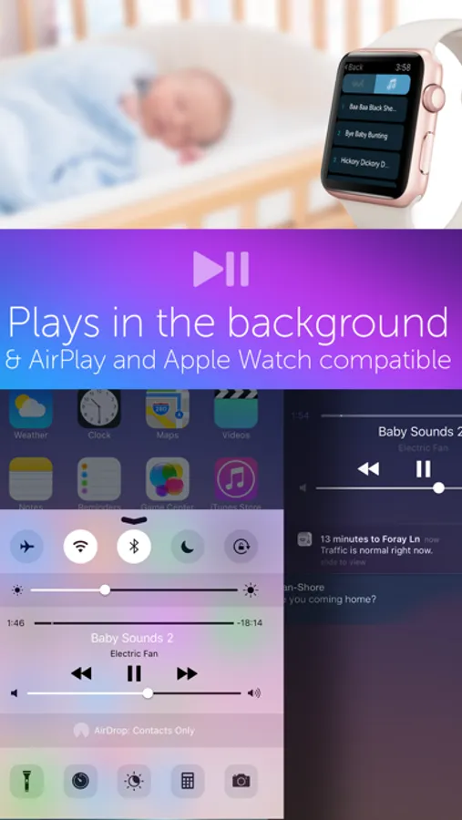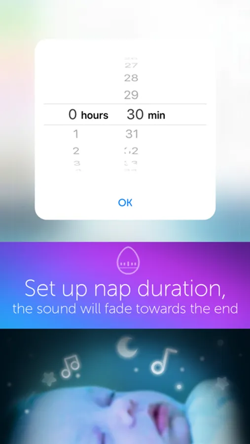 Help your baby sleep with the best selection of white noise and background soothing sounds. Designed for busy parents, the one-flick interface will allow you to quickly set it up on the go with one hand (you might need the other to hold your baby!). It comes with great unique sounds that will fade out gradually when the timer reaches the end.