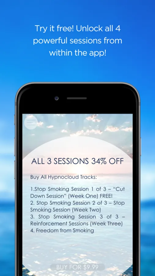1. Our Stop Smoking Hypnosis App includes Step 1 of the 3-Step Stop Smoking Process for FREE. This session will help you cut down smoking by 50% and help reduce cravings.
