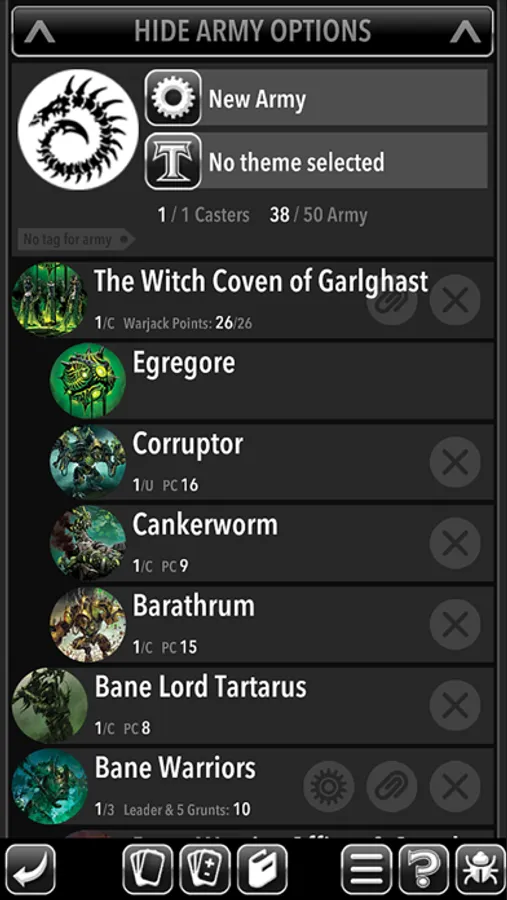 • Army Creation Workshop: War Room’s intuitive army creation makes building lists a snap.
