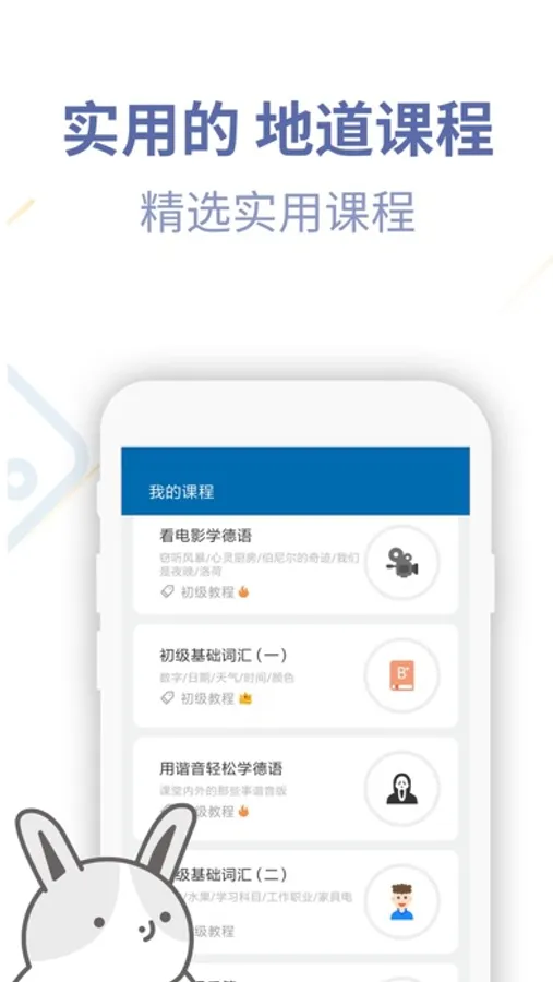 精选德语精选50词,进阶至德语初级基础词汇三部曲,更有看电影学德语等各类场景专题课程。从词,句,对话学习,循序渐进,轻松学德语,媲美沪江开心词场!无论德国电影还是德国日常生活用语,搜罗各类实用德语,闯关形式使德语学习更有动力,寓教于乐。