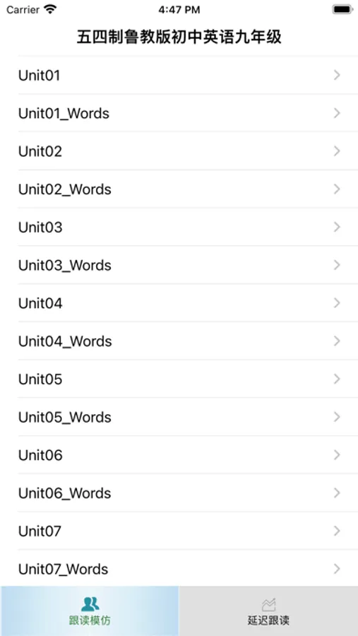 本应用对应五四制鲁教版初中九年级全一册课本,具有跟读模仿,自动听写的复读机功能。