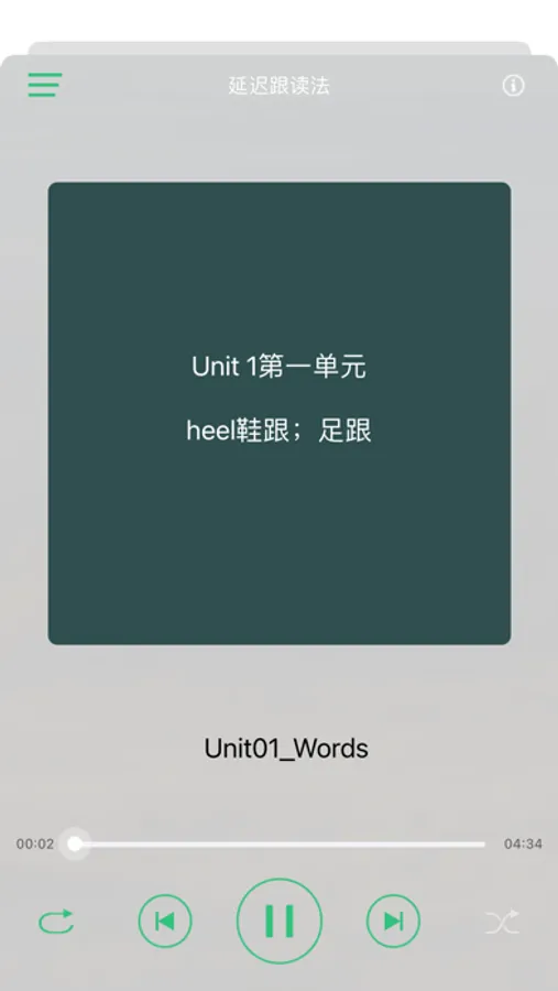 该应用支持跟读模仿,单次播放,单课循环,全部循环和听写的五种模式。它实现了实时评价用户跟读模仿的发音,并根据评价结果决定是否重新跟读。它以盲听跟读为设计原则,用户不需要反复触摸录音播放按钮,而是一键跟读,高效地练习口语。它还实现了单课循环,全部循环和智能分段功能。其中,智能分段可以让您免于寻找回放点,提高听音效率。在听写模式下,它提供了快速,常速和慢速三种模式供您选择。它贯彻了跟读模仿练习英语口语和通过听写练习英语听力的有效学习方法,让更多的学生摆脱哑巴英语,促进听力和口语相互提高,助力英语听力口语考试。