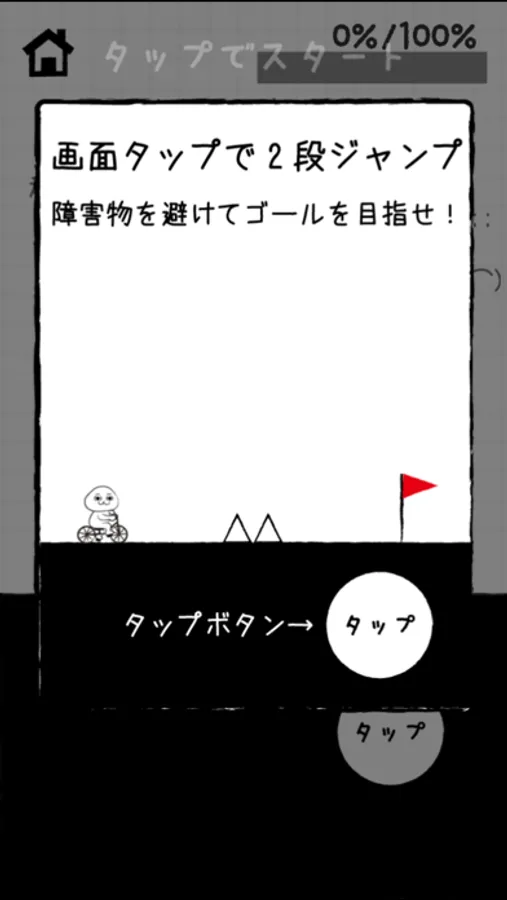遊び方:1回タップで1段ジャンプ。2回タップ2段ジャンプ