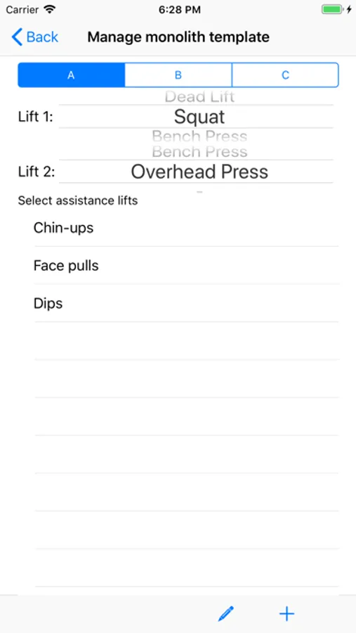 The app will automatically layout the weights and reps for each workout day.
