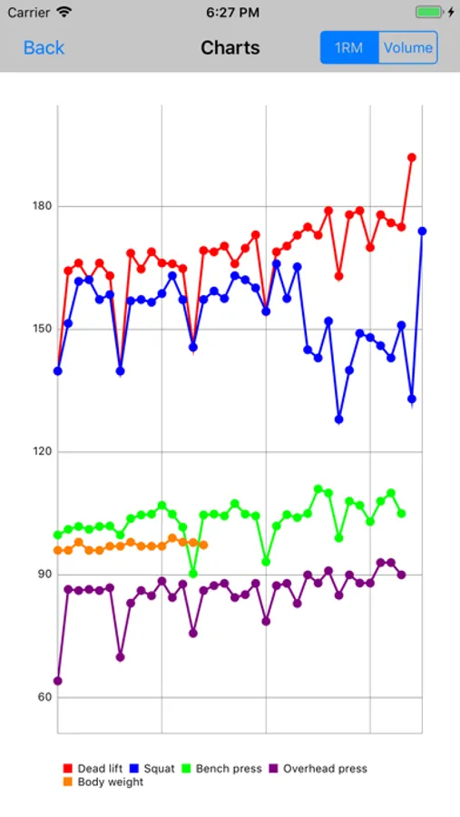 - Progress charts to show your current 1 rep max and bodyweight