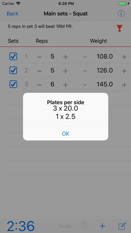 - Plates calculator shows the plates to load
