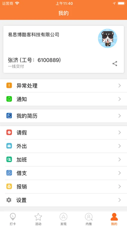 以日历的形式呈现每日考勤,使打卡、加班情况一目了然,并可申诉处理异常考勤。