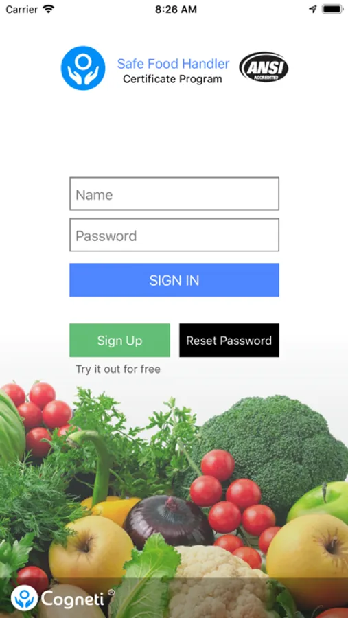 SAFE FOOD HANDLER is an ANSI-ANAB accredited program (Accreditation ID 1243) published by Cogneti LLC.