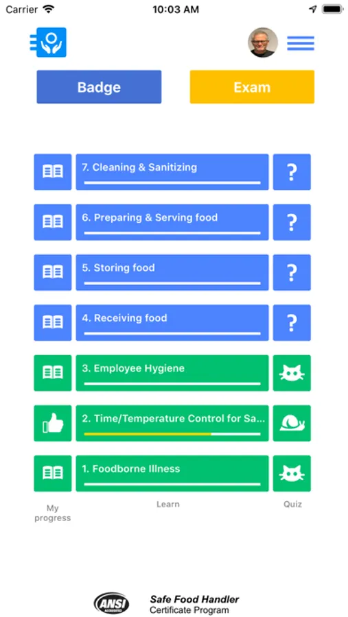 4. Once you have read and quizzed at all seven levels the EXAM is available for you to attempt.