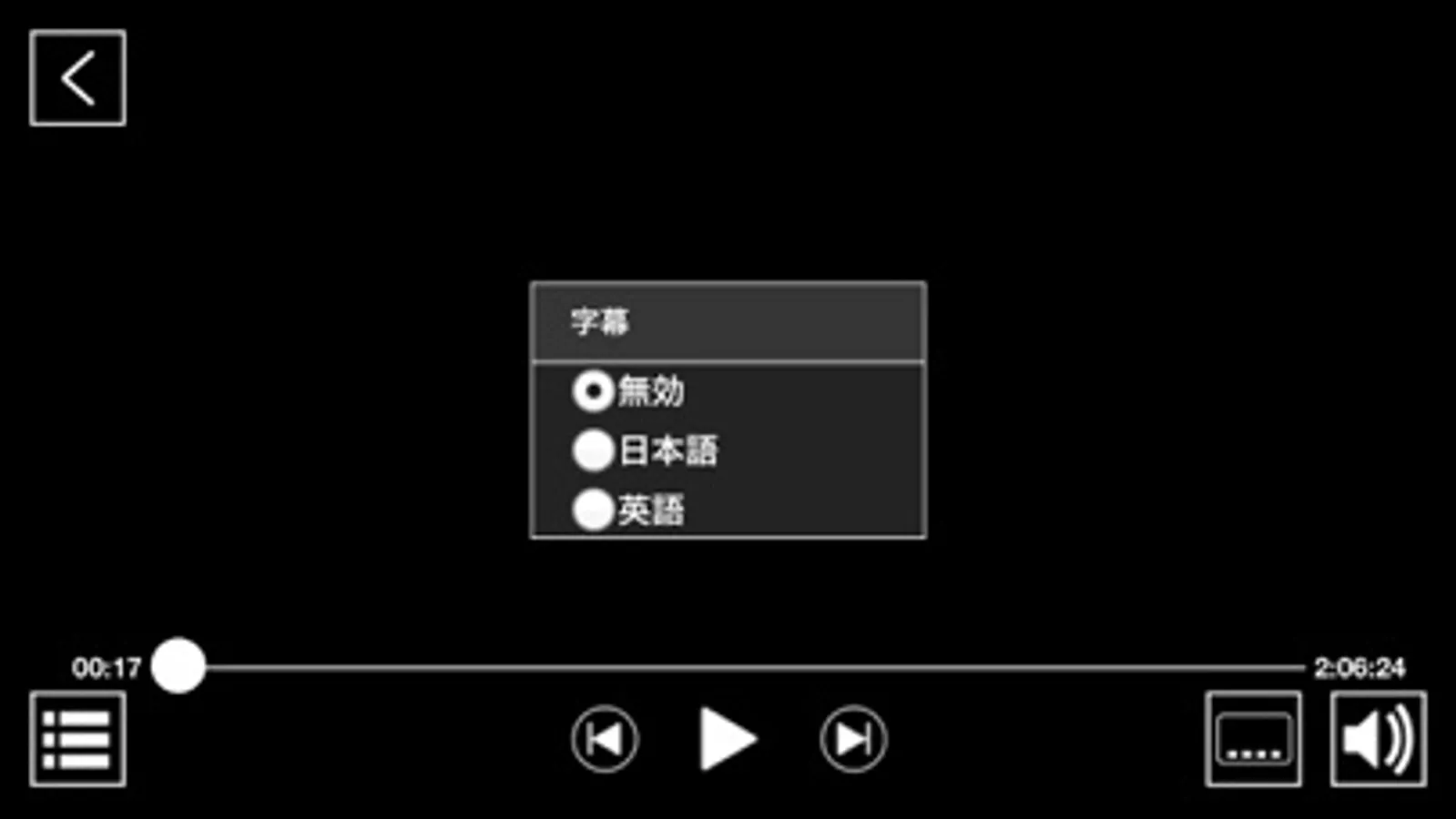 再生中にワンタッチで立ち上がるツールバーからは再生、一時停止、ルートメニューの表示に加え、字幕、音声、マルチアングル、チャプターの切り替えができます。