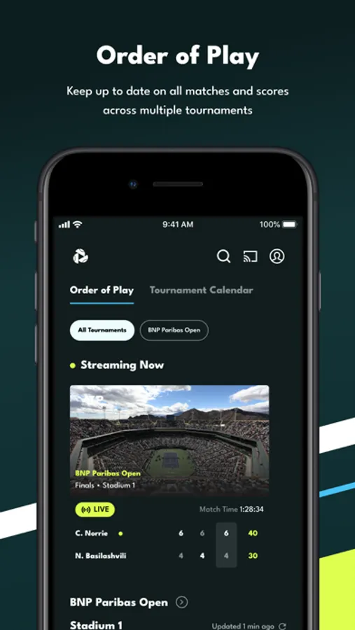 Tennis TV is the official live and on demand online video streaming app of the ATP Tour. Stream live tennis on your favourite device from every ATP Tour tournament, as well as full match replays, classic matches, highlights and live scores as they update in real-time. Watch more than 2,500 ATP singles and doubles matches each year from every ATP Masters 1000, ATP 500 and ATP 250 tournament, plus the Nitto ATP Finals and Intesa Sanpaolo Next Gen ATP Finals.